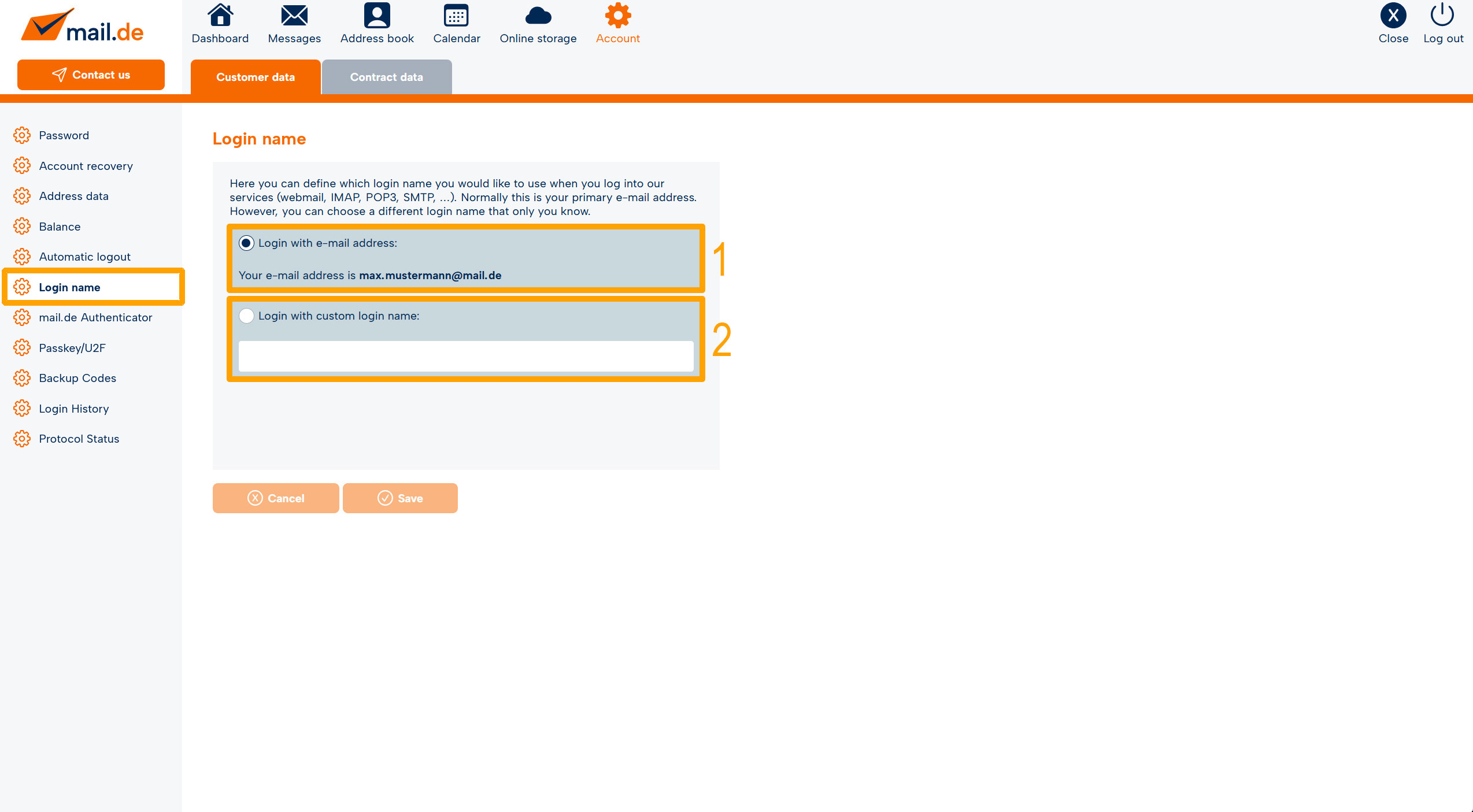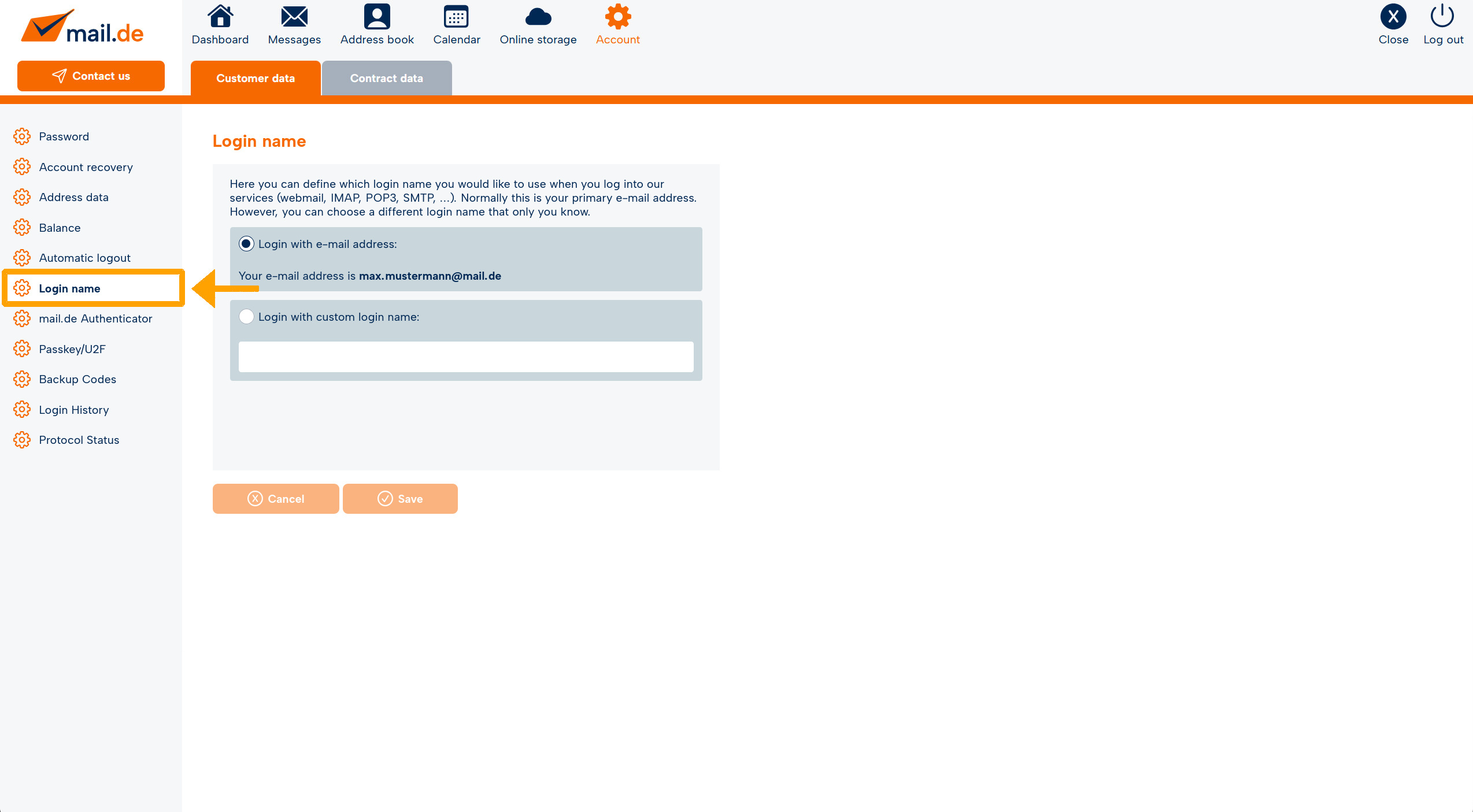If you want to log in to your mail.de mailbox, you will always need your login and password. By default, your login is your